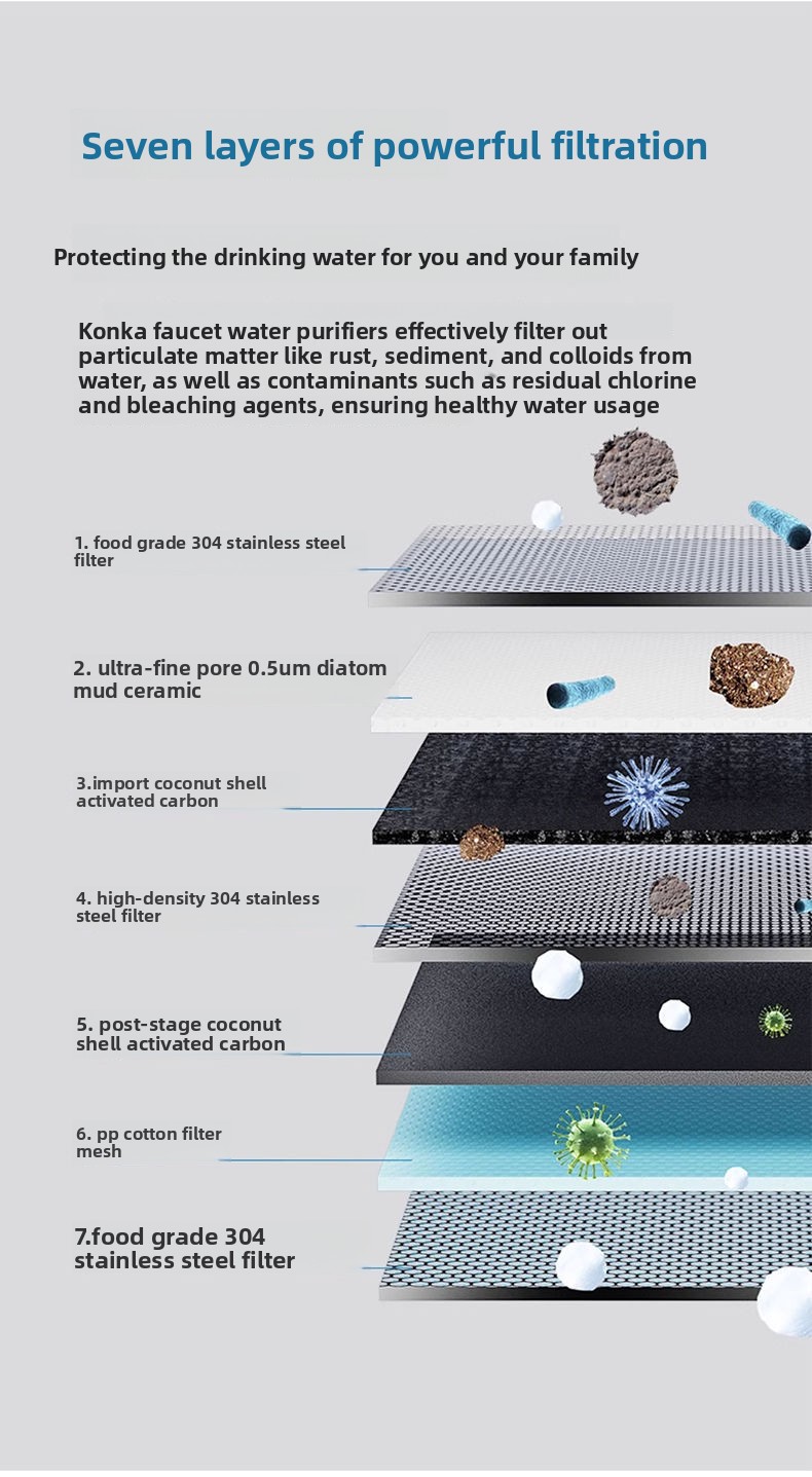Multi-Stage Filtration: Five-core filtration system (in premium version) for comprehensive water